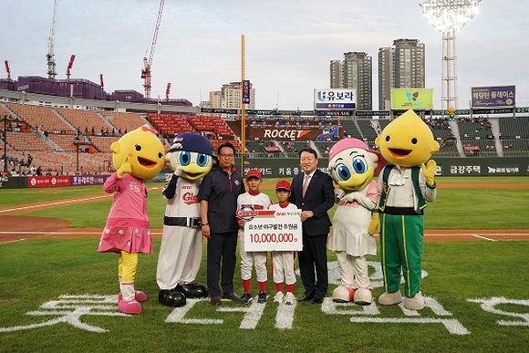 ▲부산은행은 지난 11일 오후 롯데 자이언츠 홈구장인 부산 사직야구장을 방문해 지역 유소년 야구발전 후원금을 전달했다. (사진=부산은행)
