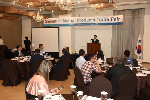 한편 수출상담회 이후 실시된 바이어 환영 만찬에는 허성곤 김해시장, 김형수 김해시의회 의장, 박성기 김해상공회의소 수석부회장이 참석해 바이어들을 환대했으며, 계약체결을 지원하고자 바이어와 매칭기업 간의 환담의 자리도 마련됐다.