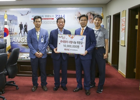 한국공항공사 부산지역본부는 지난 19일 추석을 맞아 김해공항 인근에 거주하는 소외계층을 대상으로 위문금 전달식을 가졌다.