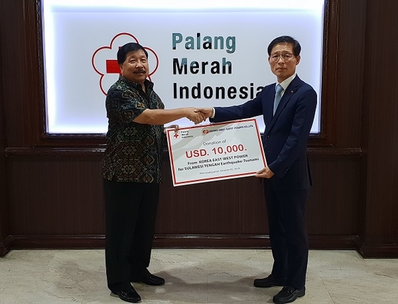 이번 성금은 인도네시아 칼셀 사업 건설 현장을 방문 중인 성식경 동서발전 상임감사위원이 직접 전달하였으며, 피해 조기 복구 작업과 주민생존을 위한 구호물자 지원에 사용될 예정이다.