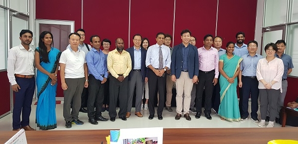 ▲최근 스리랑카 현지 관계자들과 실시한 스리랑카 해양대학 육성사업 회의(오른쪽 5번째 한국해양대 류동근 교수) 모습. (사진=한국해양대)