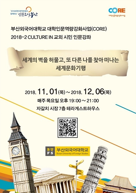 부산외대는 11월 1일부터 중구청과 함께 자갈치 시장 7층 테라게스트하우스에서 부산 지역민들이 다양한 인문학 강의를 수강할 수 있도록 시민인문강좌를 개최한다.
