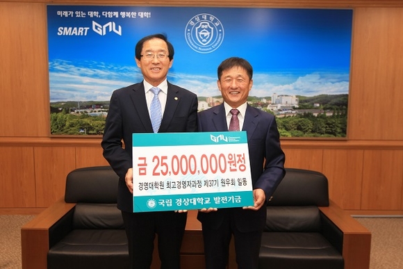 경상대학교는 경영대학원 최고경영자과정 제37기 원우회가 대학발전기금 2500만 원을 기탁했다고 16일 밝혔다.
