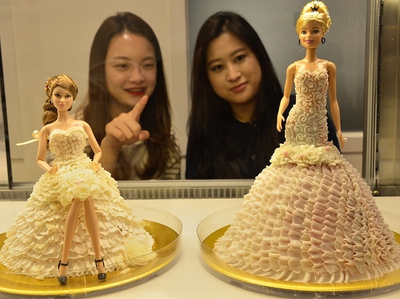 롯데백화점 부산본점 7층 빌리지7에 망미단길에서 유명한 수제 마카롱 브랜드 메이시스카페가 오픈한 가운데, 매장에 바비 인형으로 제작된 수제케익을 선보여 눈길을 끌고 있다. 이 케익은 원하는 인형을 선택해 주문 제작 판매한다. (사진=롯데쇼핑)