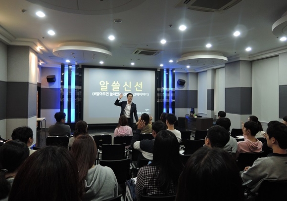 두 번째 강연자 황인(경영학과 졸업) 씨는 '알쓸신선(알아두면 쓸데 있는 신비한 선배이야기)'이라는 주제로 자기소개서와 면접에서의 노하우, 그리고 남과 비교하지 않는 자신만의 라이프 스타일을 이야기 하면서 참여자에게 유익하고 에너지 넘치는 시간을 제공했다.