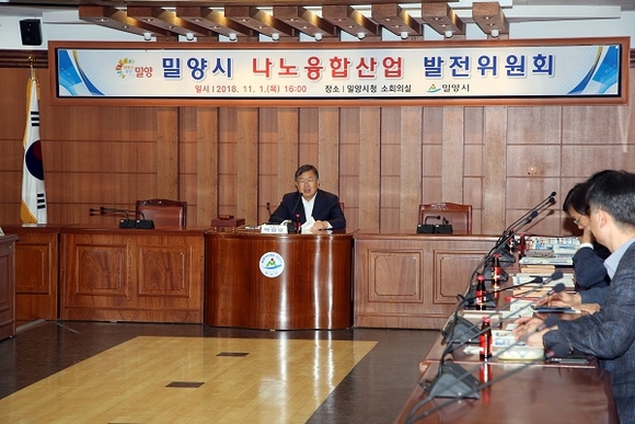 경남 밀양시는 1일 시청 소회의실에서 밀양시 나노융합산업의 육성 및 지원 등 발전방안을 논의하기 위해 '나노융합산업 발전위원회'를 개최했다.