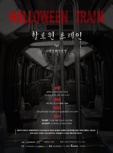 할로윈트레인은 문화기획자양성과정 '청년 됐나? 됐다!'에 참여한 청년들의 우수콘텐츠를 김해문화의전당이 직접 후원하는 형태로 개최된다.