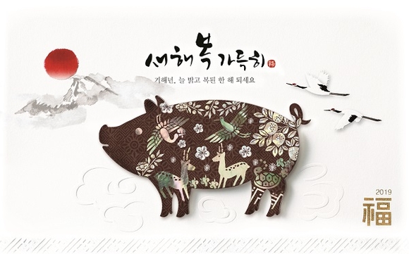 행운을 상징하고 희망찬 새해를 기원하는 전통적인 문양이 담긴 연하카드는 기해년 황금돼지 해를 맞아 현대적 감각을 가미한 다양한 돼지의 모습을 담았다.