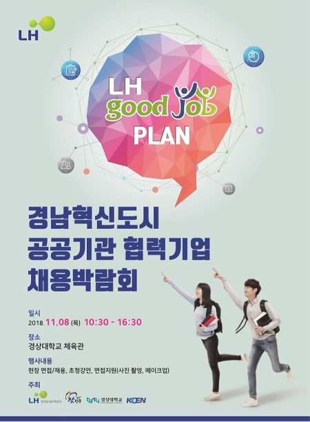 경상대학교는 경남혁신도시 이전 공공기관인 한국토지주택공사(LH)와의 파트너십을 형성하고 지역사회 청소년들에게 중견·중소 기업 취업정보를 제공하기 위해 '2018년 공공기관 협력기업 채용박람회'를 연다고 6일 밝혔다.