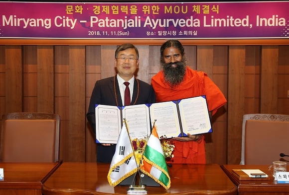 경남 밀양시는 지난 11일 밀양시청 회의실에서 인도 파탄잘리 아유르베다社와 문화·경제 분야 협력을 위한 양해각서(MOU)를 체결했다.