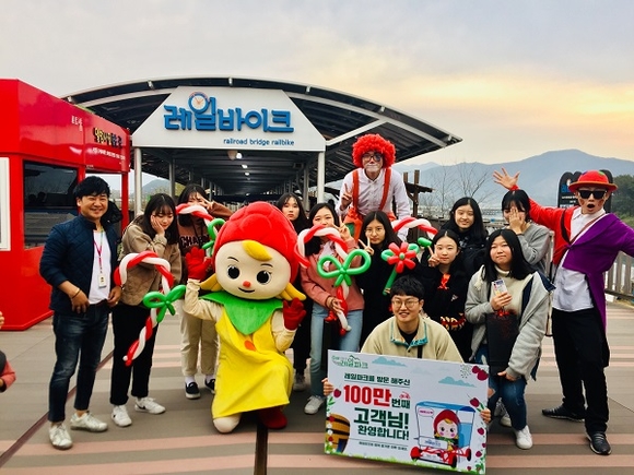 ▲김해낙동강레일파크 100만 번째 고객 기념촬영 모습. (사진=김해시)