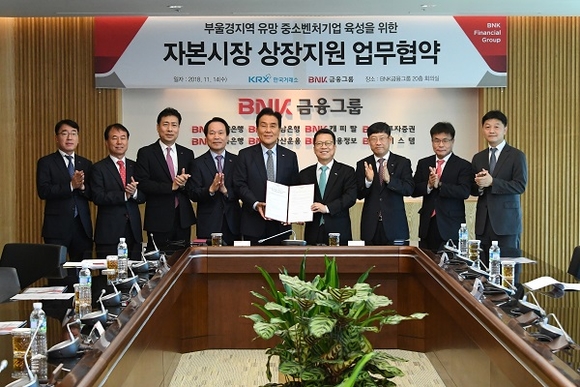 BNK금융그룹과 한국거래소(KRX)가 장기적 경기침체로 어려움을 겪고 있는 지역 산업에 활력을 불어넣기 위해 부울경 지역 비상장 유망 중소·벤처기업의 발굴 및 성장을 지원하기로 했다.