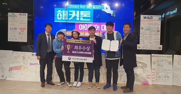 부산외국어대학교 대학일자리센터는 지난 10, 11일 양일간 열린 '2018년 부산 청년일자리 해커톤' 대회에서 부산외대 학생들로 구성된 꼬리별 팀(문인한, 양성욱, 나혜선, 채민석)이 최우수상을 수상했다고 15일 밝혔다.