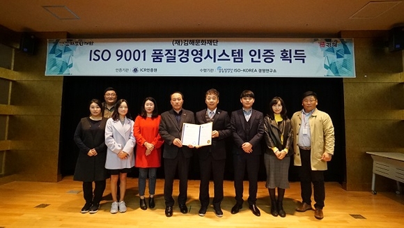 (재)김해문화재단은 품질경영시스템(ISO 9001) 국제인증을 획득했다고 15일 밝혔다.