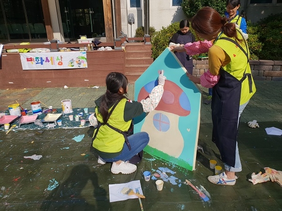 BNK부산은행은 지난 17일 화명종합사회복지관에서 장애청소년, 직원봉사자, 비장애청소년 등 30여명이 함께 어울려 '벽화그리기 봉사활동'을 실시했다고 20일 밝혔다.