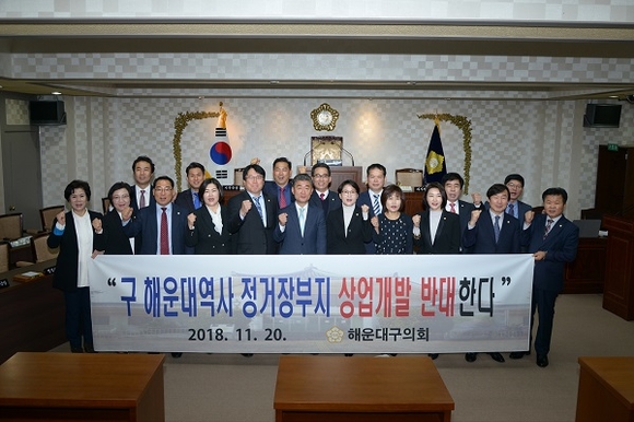 부산 해운대구의회는 20일 제238회 정례회 제2차 본회의에서 '(구) 해운대역 정거장부지 상업개발 반대 결의안'을 의원 만장일치로 채택했다.