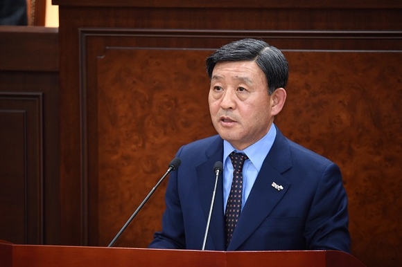 허성곤 김해시장은 21일 제215회 김해시의회 제2차 정례회에서 2019년 예산안 제출에 즈음한 시정연설을 통해 내년도 시정운영 방향을 제시하고 예산안을 설명했다.