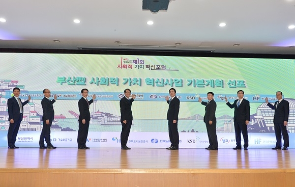 부산시와 기술보증기금 등 지역 7개 공공기관은 28일 부산국제금융센터(BIFC) 3층 캠코마루에서 시민의 행복한 삶을 구현하기 위한 '사회적 가치 혁신사업 기본계획 선포식' 및 '사회적 가치 혁신포럼'을 개최했다.