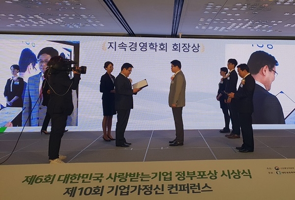 해당 정부포상은 산업통상자원부 및 중소벤처기업부 주최로 개최되고 공공기관 및 민간의 지속가능경영을 위한 성과를 종합적으로 평가하는 대표적인 포상이다.