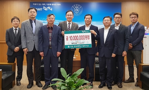 KT&G 경남본부는 지난 2009년 12월 처음 500만 원을 기부한 것을 시작으로 20회에 걸쳐 모두 1억 338만여 원을 경상대에 기부했다. 이 기부금은 학생장학금, 취업홍보 사업, 인재개발원 상상옷장 설치기금 등으로 사용되고 있다.