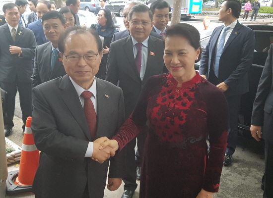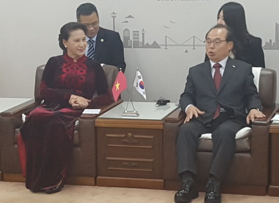 지난 4일 오후 오거돈 부산시장과 응웬 티 킴 응언(Nguyen Thy Kim Ngan) 베트남 국회의장이 부산시청 국제의전실에서 만나 부산과 베트남 간의 우호협력 증진을 다짐했다.