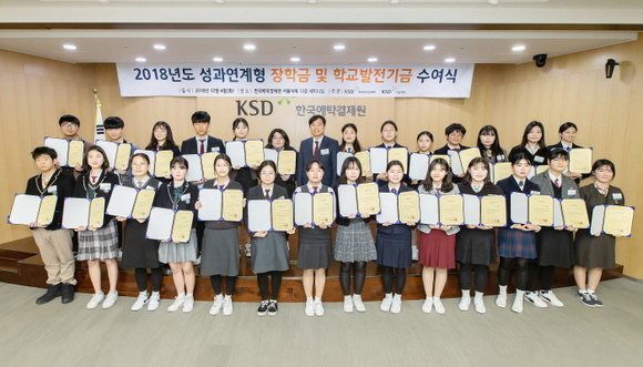 한국예탁결제원 KSD나눔재단(이사장 이병래)이 지난 4일 서울 영등포구에 있는 사옥에서 특성화고 장학생과 우수학교에 총 2억 4000만원의 장학금을 전달했다고 5일 밝혔다.