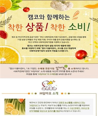 이번 캠코 더불어장터 개설을 기념해 캠코는 홍보 지원 대상 기업 가운데 하나인 ㈜담아요와 협력, ‘캠코와 함께하는 착한 상품! 착한 소비!’ SNS 이벤트를 진행한다.