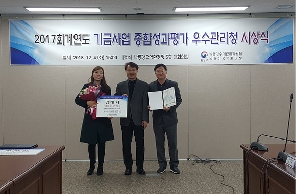 수계관리기금사업 종합 성과평가는 수계관리기금 사업에 대한 내실 있는 집행과 사후관리를 위해 매년 우수 지자체에 대한 포상을 하고 있다.