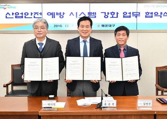부산 해운대구는 부산경제진흥원, 안전보건공단과 지난 4일 구청 중회의실에서 '산업안전을 위한 예방 시스템 강화 업무협약'을 체결했다.