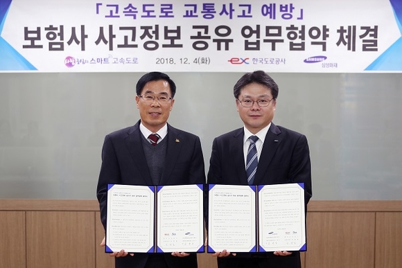 한국도로공사는 지난 4일 성남 교통센터에서 삼성화재와 '보험사 사고정보 실시간 공유 및 사고예방 업무협약(MOU)'을 체결했다.