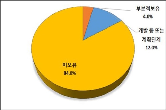 부산상의 조사결과 조사대상 업체 가운데 84%가 전기나 수소차에 대한 기술이 없는 것으로 집계됐다. 기술개발 중이거나 계획하고 있는 기업은 12%, 부분적 보유는 4%에 그쳤으며 기술을 보유하고 있다는 기업은 단 한 곳도 없는 것으로 나타났다.