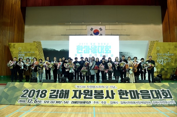 경남 김해시는 6일 김해문화체육관에서 자원봉사자 1천여명이 참여한 가운데 지역 14만 자원봉사자 화합의 축제인 '2018 자원봉사 한마음대회'를 개최했다.