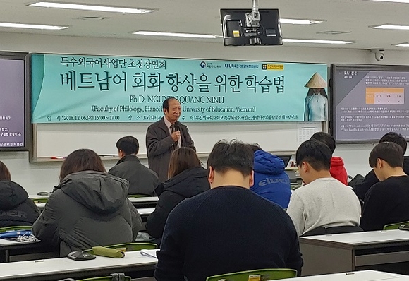 특수외국어전문가양성사업의 일한으로 진행된 이번 초청 강연회에는 베트남 하노이사범대학교 국어국문학과 응웬 꽝닝(Nguyen Quang Ninh) 교수를 초청해 '효과적인 베트남어 학습법'에 대해 특강과 질의응답 시간을 가졌다.
