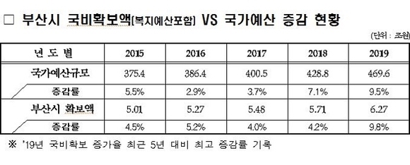 부산시는 내년도 최종 국비 확보 규모가 6조 2686억원이라고 10일 발표했다.