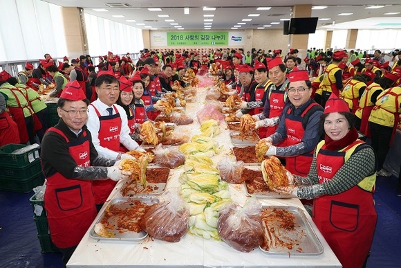경남 창원시는 지역 대표기업인 두산중공업과 함께 지난 8일 '2018년 사랑의 김장 나누기' 행사를 가졌다.