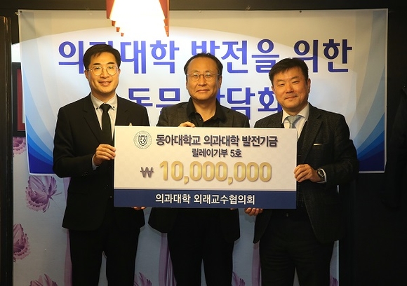 동아대학교 의과대학 외래교수협의회는 지난 10일 열린 '의과대학 발전을 위한 동문 간담회'에서 의과대학 발전기금으로 1000만 원을 기부했다고 12일 밝혔다.