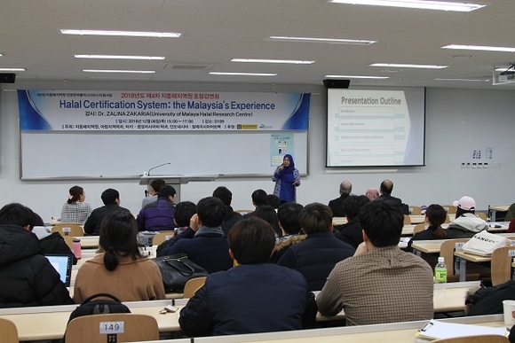 이번 특강은 할랄 인증 기관으로서 세계적인 권위를 갖고 있는 말레이시아 이슬람 개발국(JAKIM) 관계자와 말라야대학교 할랄 연구센터(University of Malaya Halal Research Centre) 소장을 초청해 'Halal Certification System: the Malaysia’s Experience'를 주제로 진행됐다.