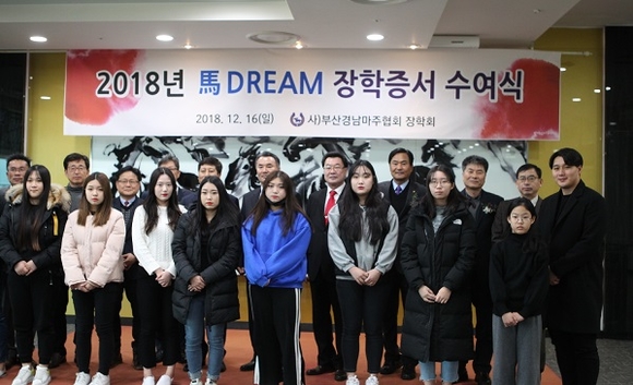 부산경남마주장학회는 지난 16일 렛츠런파크 부산경남 관람대에서 지역 인재들을 대상으로 장학증서 수여식을 가졌다.