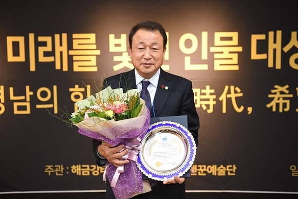 김해시의회 김형수 의장(사진)이 지난 15일 거제 해금강테마박물관에서 열린 '제3회 경남 미래를 빛낸 인물대상' 시상식에서 사회공헌-지역발전부문 대상을 수상했다.