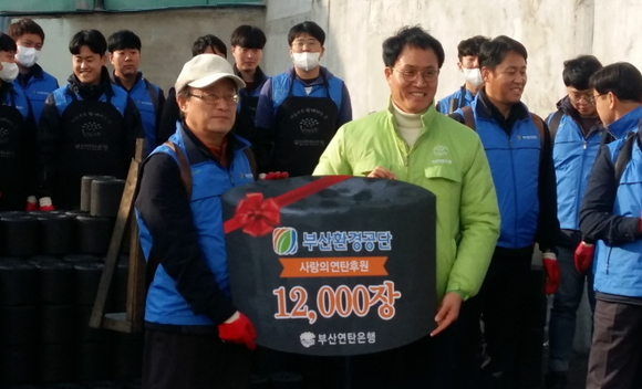 부산환경공단 배광효 이사장과 임직원들이 지난 17일 동구 범일5동을 찾아 겨울 추위에 어려움을 겪고 있는 독거노인 및 조손가정에 연탄 1만 2000장을 전달했다고 18일 밝혔다.