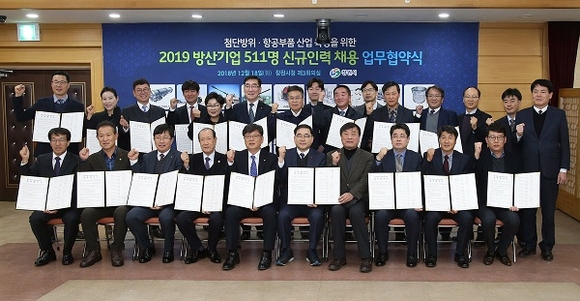 창원시는 18일 방산기업 21개사와 함께 첨단방위산업 육성을 위한 2019년 방산기업 신규인력 511명 채용 업무협약(MOU)을 체결했다.