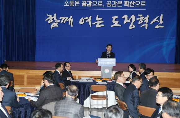 아울러 도정혁신추진단은 로드맵 수립을 위해 지난달 19일 혁신전략회의에서 도정혁신 추진방향 토론, 24일 간부공무원 공직문화혁신 워크숍, 30일 6급이하 실무자 토론회, 12월 7일 로드맵수립 과제별 토론회(과장, 사무관)를 거쳤으며, 이번 논의결과를 반영해 최종 '도정혁신 로드맵'을 확정할 계획이다.