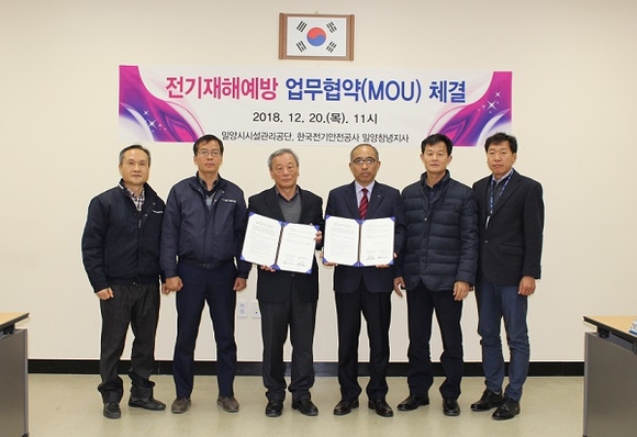 밀양시시설관리공단은 20일 한국전기안전공사 밀양창녕지사와 전기재해 예방을 위한 업무협약을 체결했다. 이번 협약을 통해 전기재해로부터 안전한 밀양을 만들고, 공단 전기시설물의 안전을 위해 주기적인 안전진단과 전기설비 안정화에 최선의 기술력을 지원받아 업무개선을 해나갈 계획이다. 박철석 이사장은 “한국전기안전공사와 함께하는 전기안전서비스의 지속적인 시행으로 밀양시시설관리공단의 시설물에 대한 무재해를 실현해나갈 것이다”고 말했다.