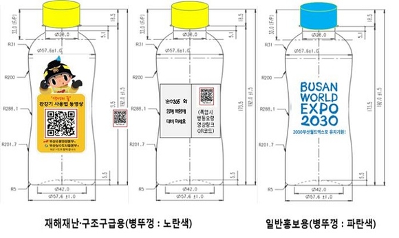 재해·재난·구조·구급용으로 지원되는 병입수돗물에는 라벨 뒷면에 화재 시 완강기 사용요령과 폭염 시 시민행동요령 등을 QR코드와 함께 붙여 홍보에 나선다. 또 병마개의 색깔도 노란색으로 바꿔 현장에서 바로 구분할 수 있도록 한다는 방침이다.