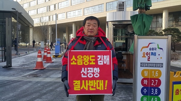 이 부의장은 지난 17일부터 현재까지 김해시의회 부의장실에서 농성을 해왔으며, 이날 오전 국토부 세종시 청사 앞 1인 시위를 진행했다.