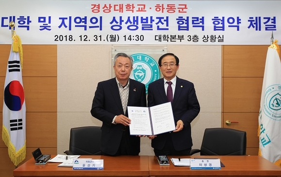 경상대학교와 하동군은 지난달 31일 오후 대학본부 3층 상황실에서 대학과 지역사회 발전을 위한 관·학 협력 활성화 양해각서(MOU)를 체결했다.