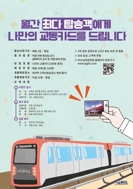 부산김해경전철은 올 한 해 동안 월간 충성고객 감사 이벤트를 진행한다고 7일 밝혔다.