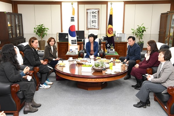이번 방문은 지난해 12월 양산지역 필리핀 이주여성이 가정폭력에 의해 사망하는 사건이 발생하면서 김지수 의장과 표병호, 성동은, 김경영, 김영진 의원이 양산다문화가족지원센터에 마련된 추모식장을 직접 찾아 조문하고, 관계자를 격려한 것에 대한 고마움을 표하기 위해 이루어졌다.