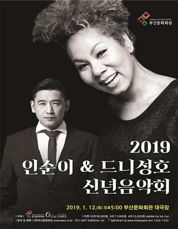 부산시는 오는 12일 오후 5시 부산문화회관 대극장에서 2019년 신년음악회를 개최한다고 8일 밝혔다. 이날 인순이와 클래식 기타리스트 드니성호가 무대에 오른다.