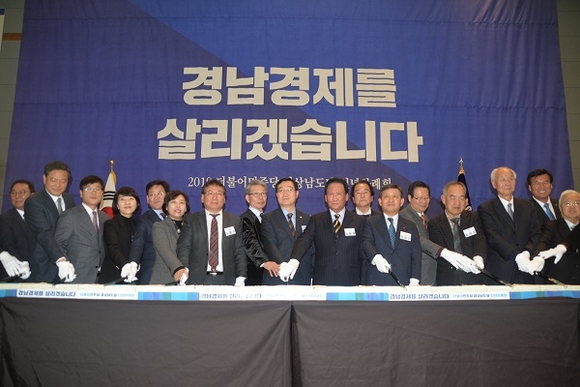 더불어민주당 경남도당이 8일 창원 컨벤션센터 컨벤션홀에서 2019년 신년하례회를 열고 신년 각오를 다졌다.